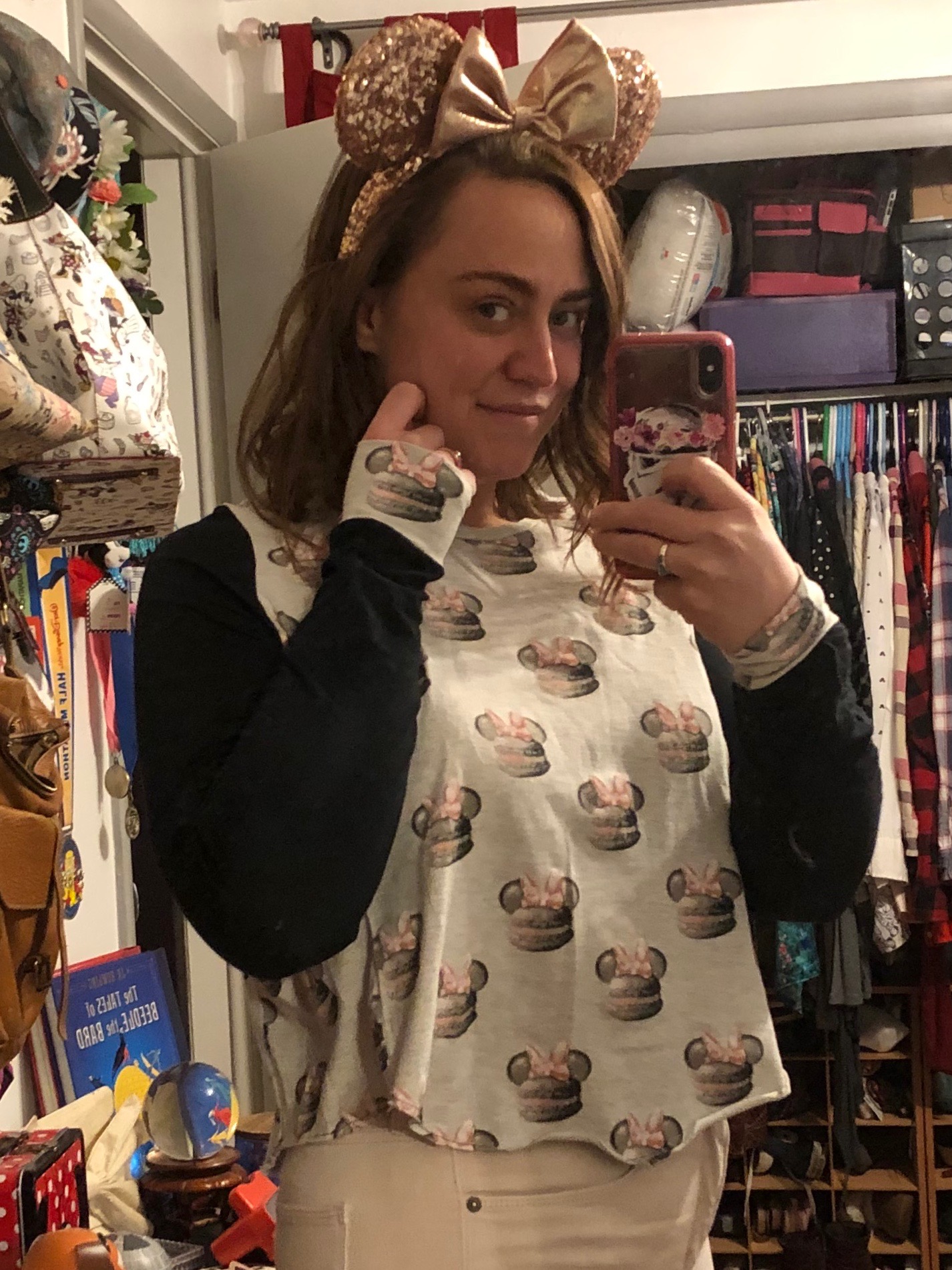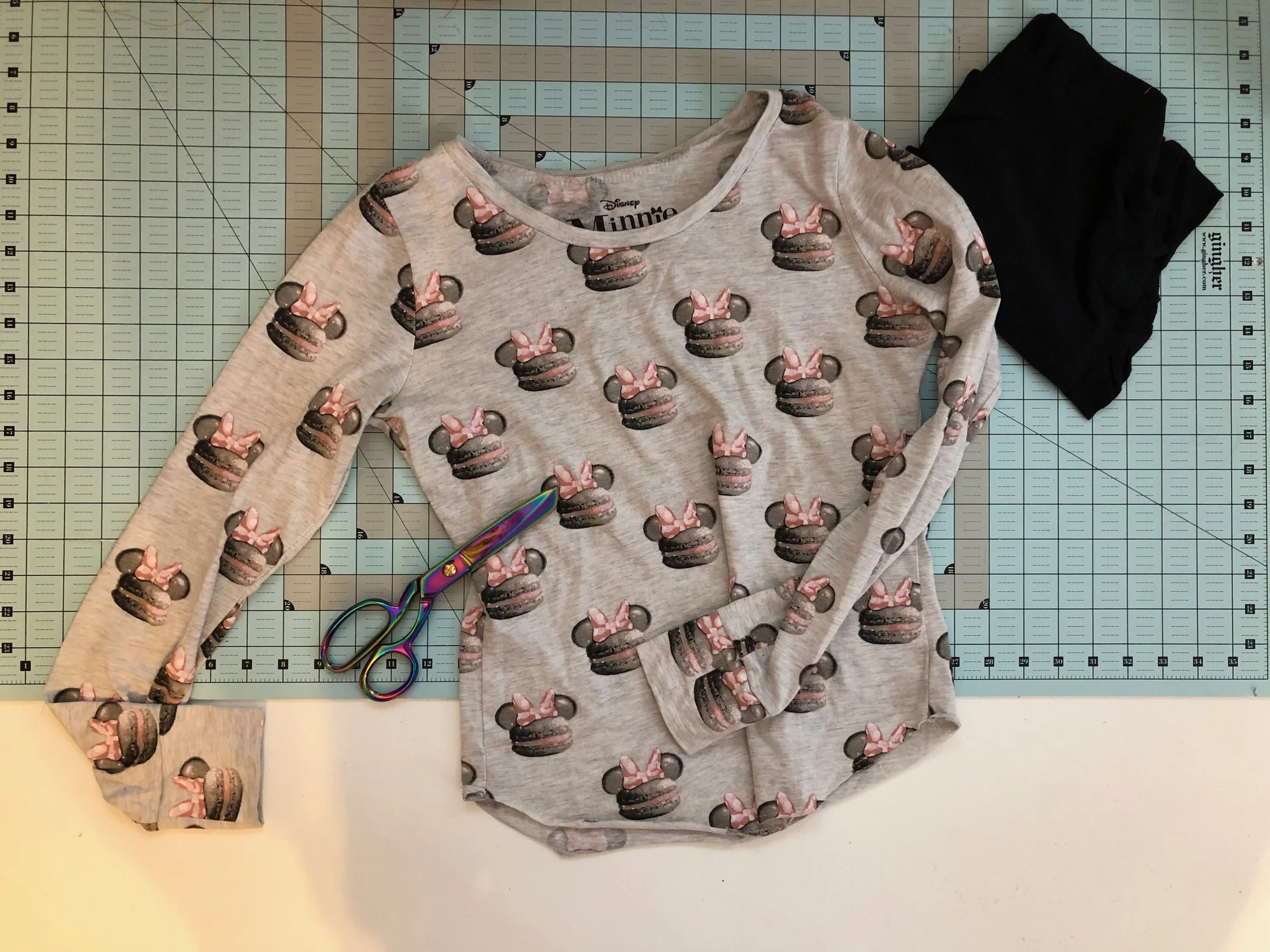 It’s no secret that I love everything Disney, and in the past year or so I started following several style bloggers and small shop owners who create Disney-inspired looks and goods, making it so that even though I don’t get to go to the parks everyday, I get to live vicariously and experience Disney magic basically everyday. Sometimes these Disney fashionistas wear things that I just can’t help but covet, and a few months back, one of them wore this adorable Minnie Mouse macaron shirt that I REALLY wanted. Well, fortunately for me, she mentioned where she got it in one of her Instagram Stories! Unfortunately for me, she got it years ago from a company that no longer exists. So I took to the internet and Googled around until I stumbled across one on Poshmark! Score! Except it was a size small in a brand that ran small, and there is no way I’m a small. But I bought it anyway, because I’m crazy and crafty and up for a challenge - and I just couldn’t live without that fabric in my life 😉