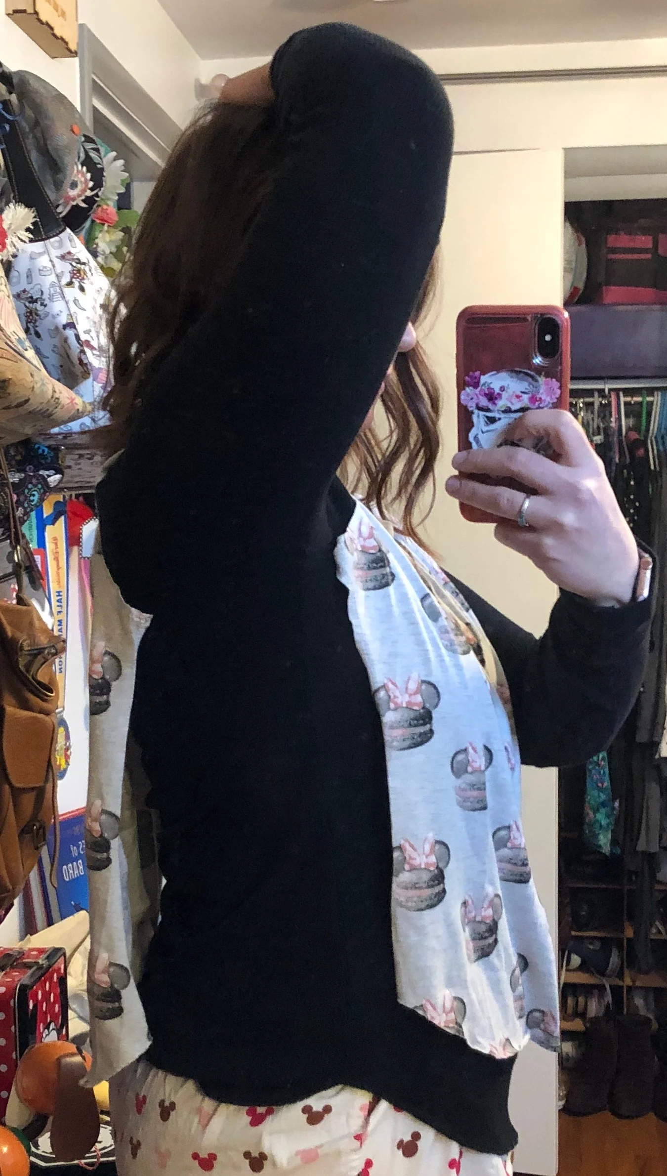 And voila! I’ve got a fun, versatile and unique Disney shirt. I can lounge in it, I can wear it to the parks, or I can pair it with some jeans and still be presentable. In the past, before I started sewing, I’ve passed on buying shirts that were too small or too big despite being in love with the fabric. Now, I can choose to create something instead.