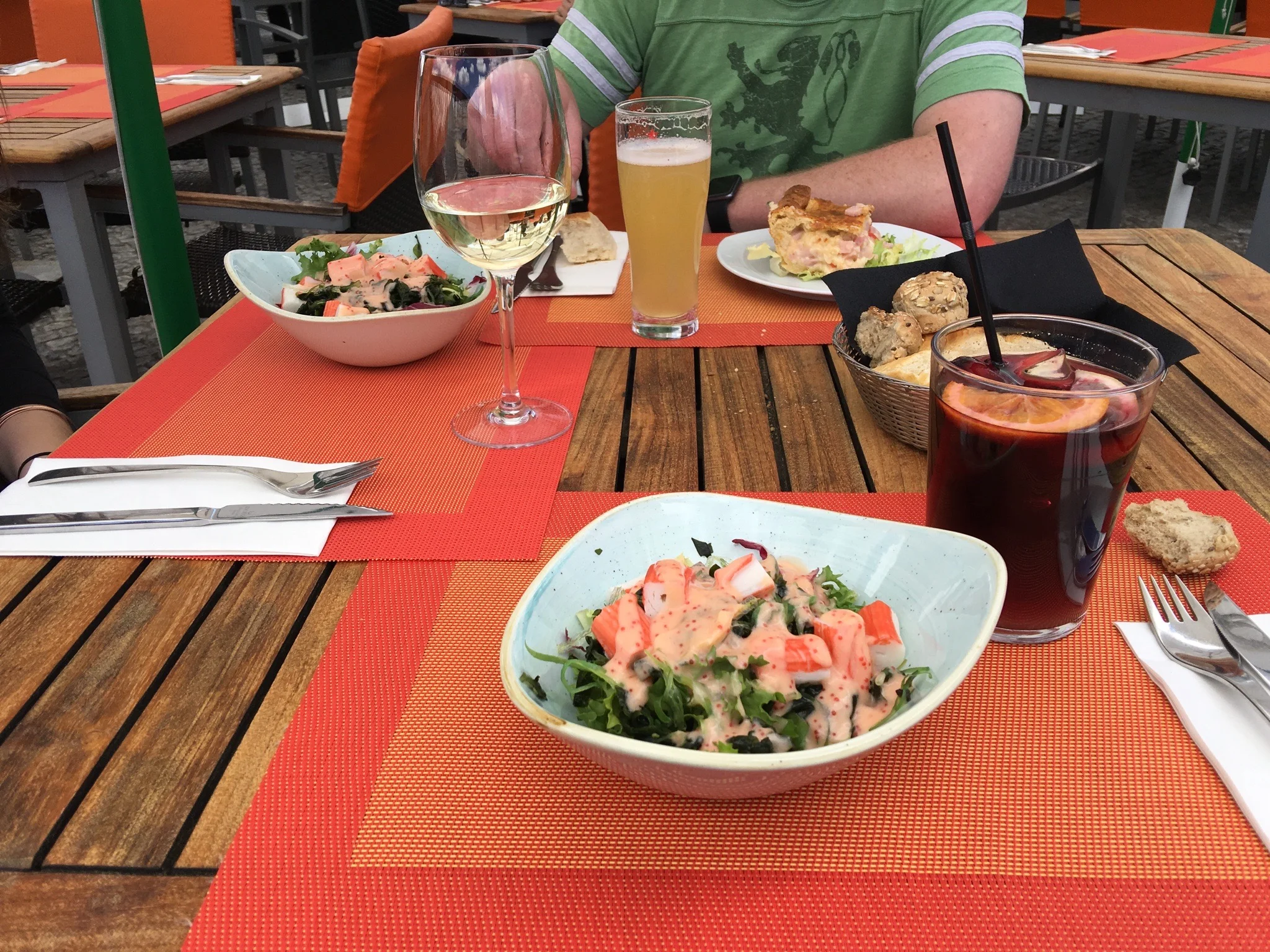 One evening we went to Nathaniel’s sister’s favorite bar to hang out with friends. I got a 6€ mojito that was enormous! Many European bars seem to bring you something to munch on even if you only order drinks (a really good thing, too, in my opinion), but El Tigre goes above and beyond. They bring plates full of bread, jamon, sausage, chicken, croquettas… I’m sure I’m forgetting something they brought, but my point is that you get A LOT of food brought to you when you order drinks. The food might not be quite as gourmet as other establishments in the city, but it tastes good, and there’s no shortage 😜