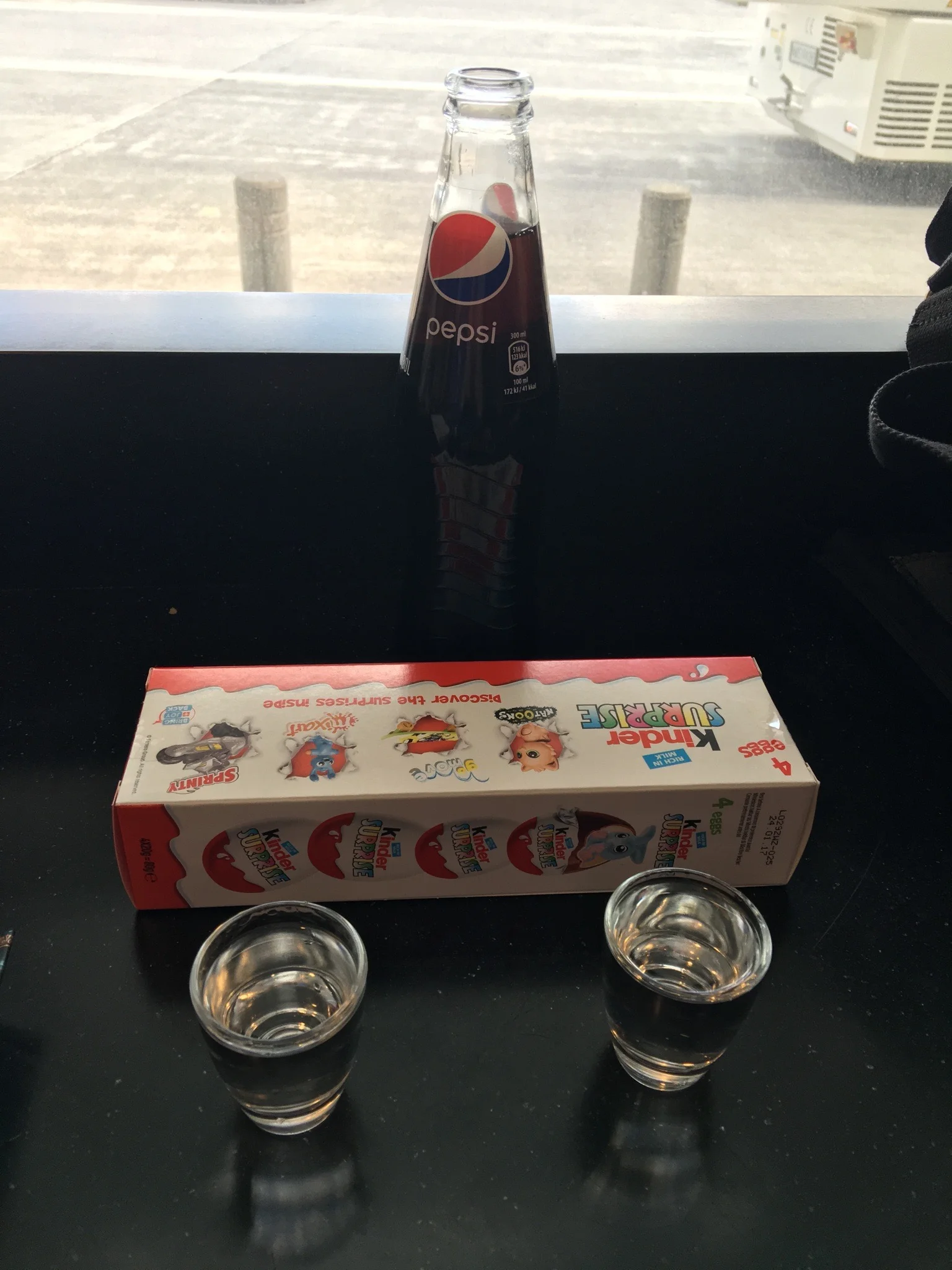 In the airport, we decided to try Brennivin, the local liquor of choice, which was also recommended by Anthony Bourdain. It's kind of like Schnapps, flavored with caraway. Pretty easy to drink, but they call it the "Black Death". I also found Kinder Eggs at the duty free shop in the airport, which was super fun!