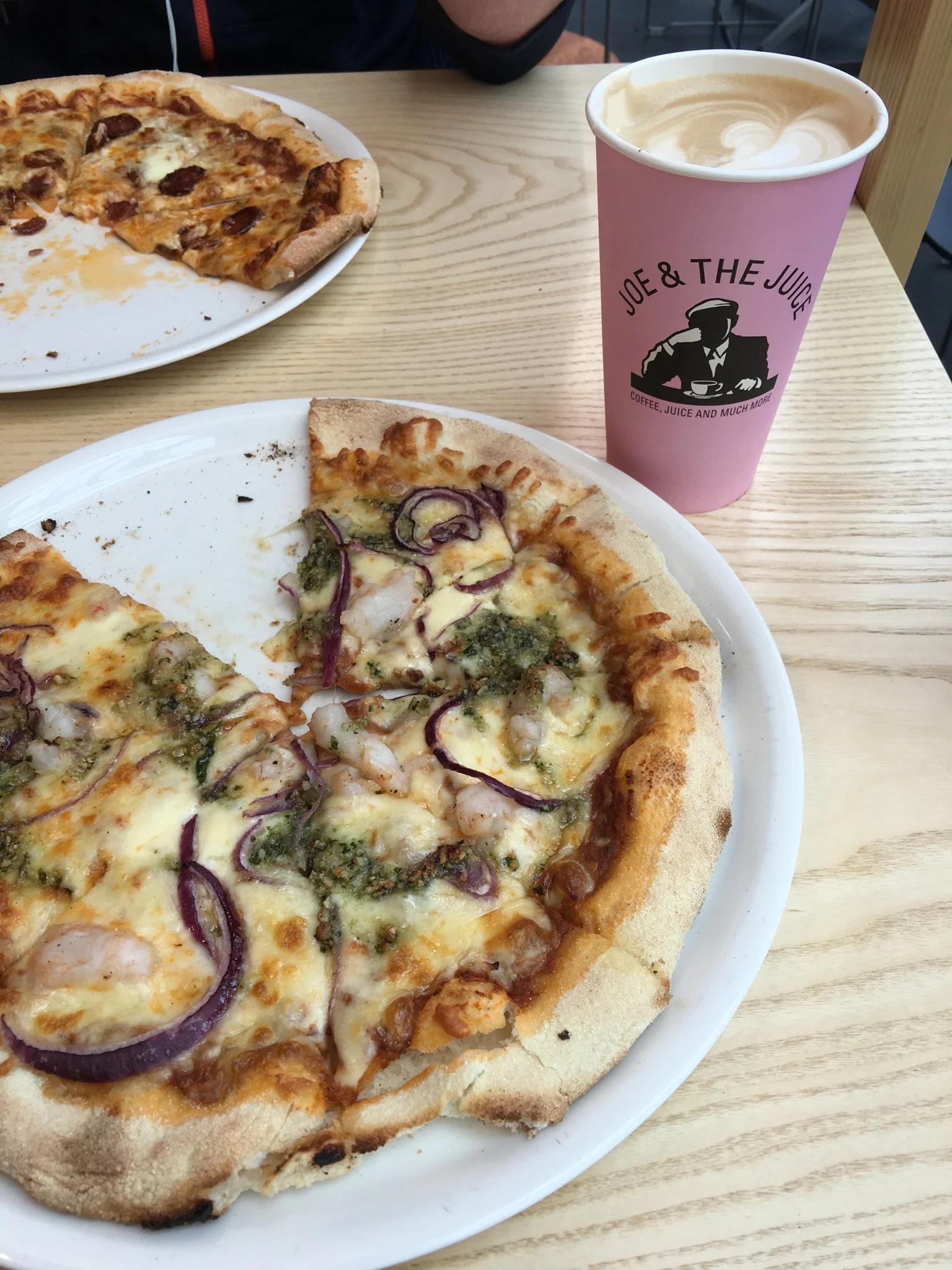 On our way home from our big adventure, we had another (smaller) layover in Iceland, where we just ate at the airport. That restaurant was called Nord, and they had delicious pizzas! I got lobster on mine, while Nathaniel got chorizo and truffle. 😋 I also got a coffee at Joe & The Juice where they had a funny tip jar, which I think was poking fun at Americans...