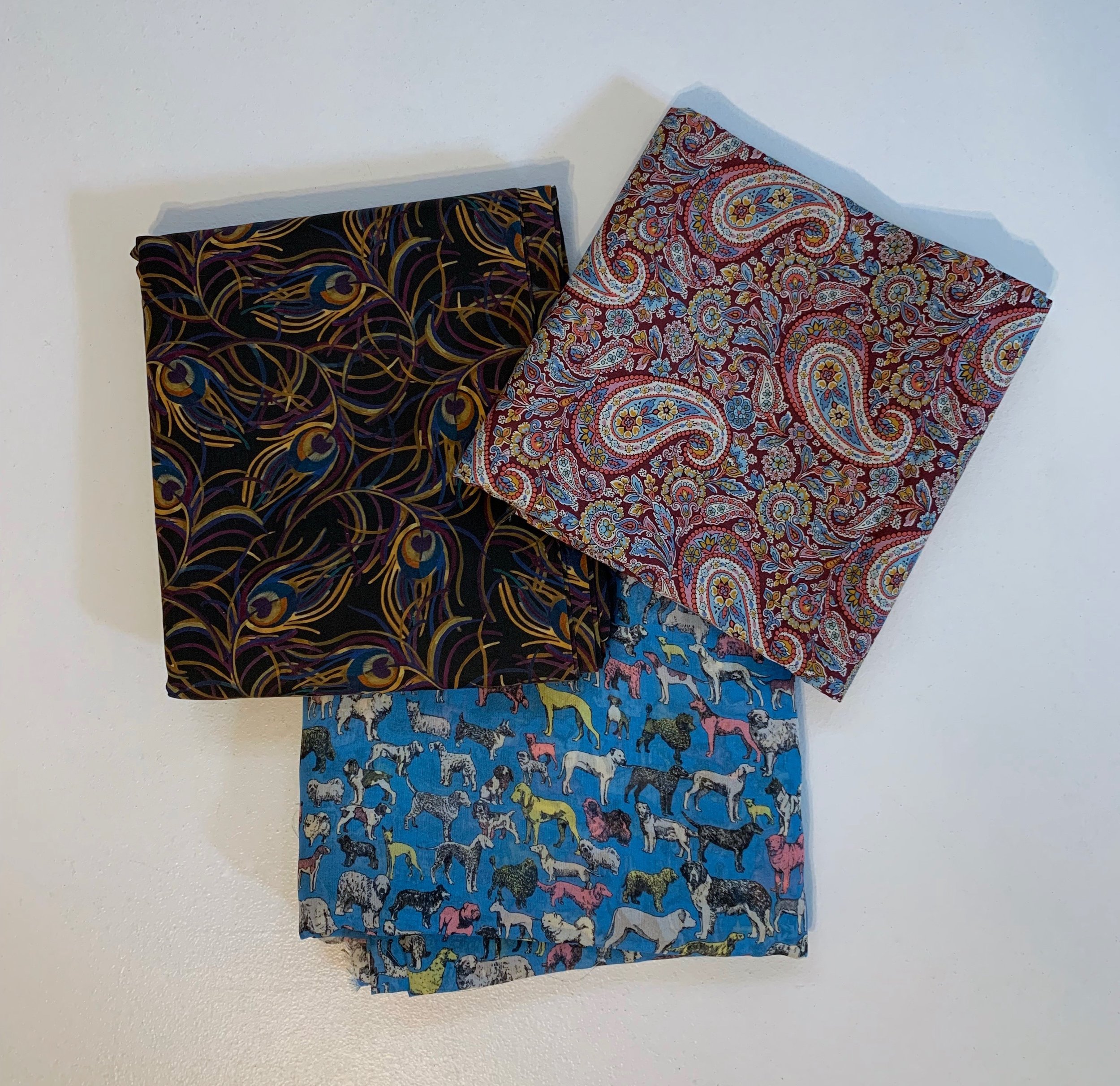 Next was Liberty - this is actually a department store with several floors of clothes, accessories, dishes, furniture, etc., but they also sell fabrics. I’ve actually seen Liberty fabric before in small shops near me (Elfreide’s and Fancy Tiger Crafts), and I thought of them as small, intricate prints, usually florals, and they didn’t always really appeal to me. However, they had SO MUCH to choose from in London, including a new line with prints that weren’t what I would have expected with my limited knowledge of the company. I ended up getting two meters of a dark peacock print, one meter of a paisley print, and two meters of a sheer dog print, because some of the dogs look like Riker, and it was half off!